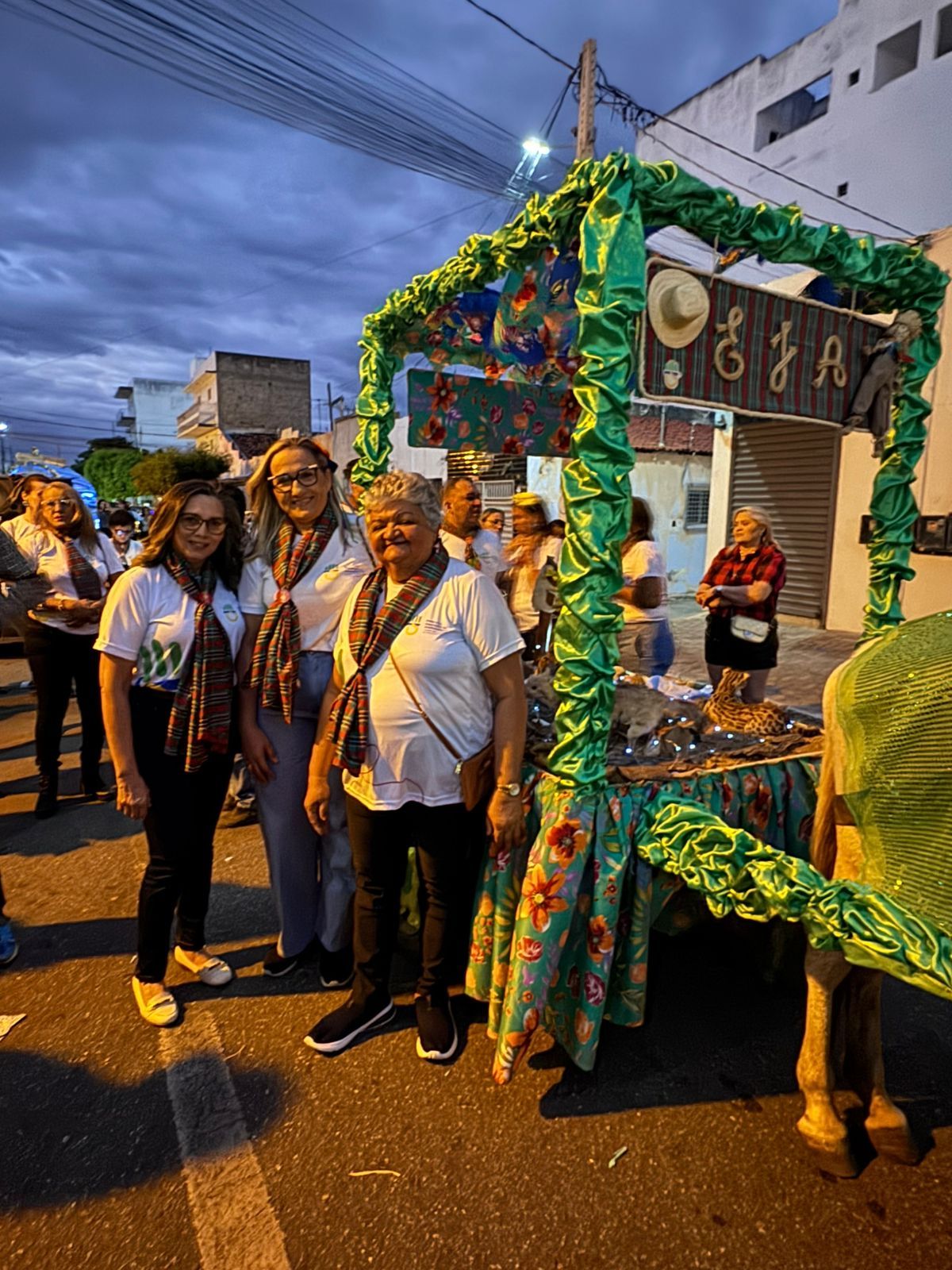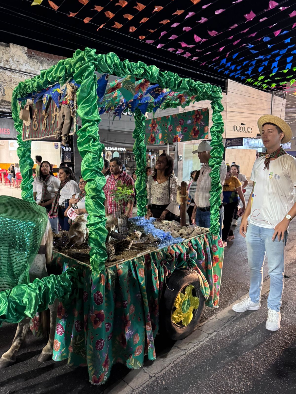 "Nossa carroça do @pactoeja nos convidou à reflexão, valorizando a fauna, flora, árvores e rios, e reforçando a conexão entre Deus, a vida e o planeta. A Carroça Junina da EJA faz uma homenagem à ”Canção da Floresta”, lembrando-nos da beleza e importância da floresta, dos povos indígenas e do cuidado com o meio ambiente. Professores, Alunos e todos Juntos, podemos proteger a nossa casa comum e construir um futuro mais sustentável para todos!", destacaram os representantes.