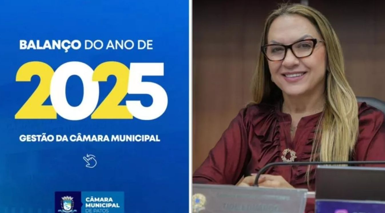 A presidente da Câmara Municipal de Patos, vereadora Tide Eduardo, apresentou, durante a última sessão do ano, na quinta-feira (18), um balanço detalhado das atividades desenvolvidas pelo Legislativo patoense ao longo de 2025, destacando a alta produtividade da Casa e o trabalho conjunto de vereadores, comissões e servidores.
