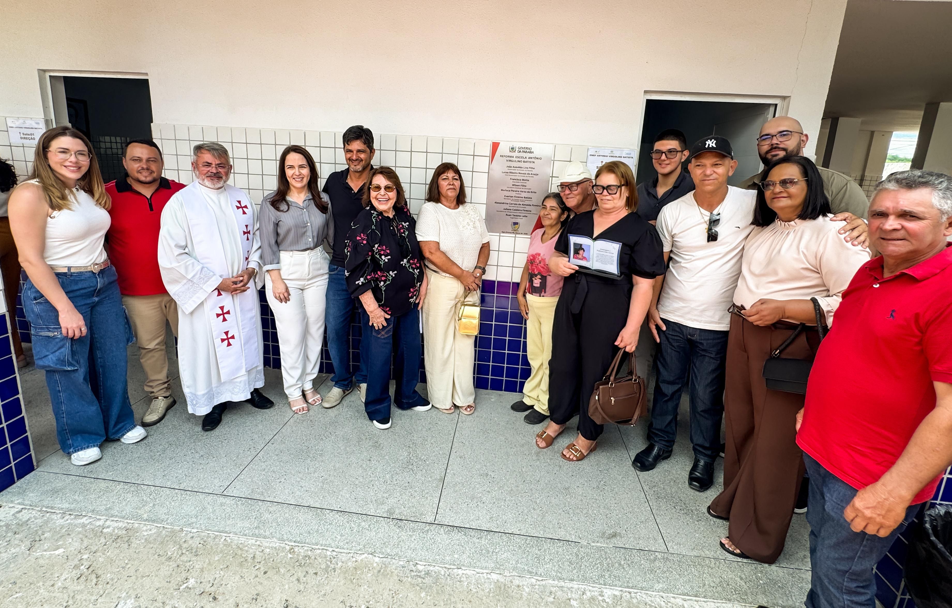 Em seguida, a deputada participou da entrega da reforma e ampliação da Escola Antônio Virgolino Batista, um investimento de mais de R$ 900 mil, sendo R$ 500 mil de recursos próprios do Município e R$ 420 mil em convênio com o Governo do Estado, por meio de articulação do mandato da deputada Francisca Motta.