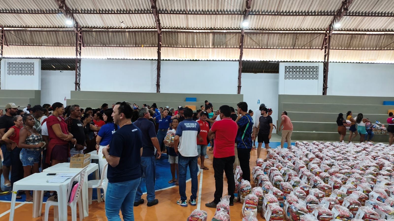 A distribuição aconteceu de forma organizada, garantindo que as cestas chegassem às famílias previamente cadastradas, levando alimento e dignidade para a mesa de centenas de lares.