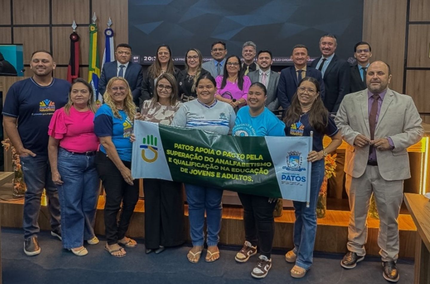 A Câmara Municipal de Patos aprovou, por unanimidade, o Projeto de Lei nº 35/2026, de autoria da presidente da Casa Juvenal Lúcio de Sousa, vereadora Tide Eduardo (Republicanos), que institui o Dia Municipal da Educação de Jovens e Adultos (EJA) no âmbito do município.