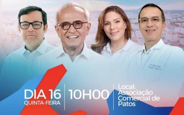 Uma plenária com a participação de lideranças políticas e representantes da sociedade está prevista para ocorrer nesta quinta-feira, 16 de abril, no município de Patos. O encontro será realizado no auditório da Associação Comercial e Industrial de Patos, com início programado às 10h.