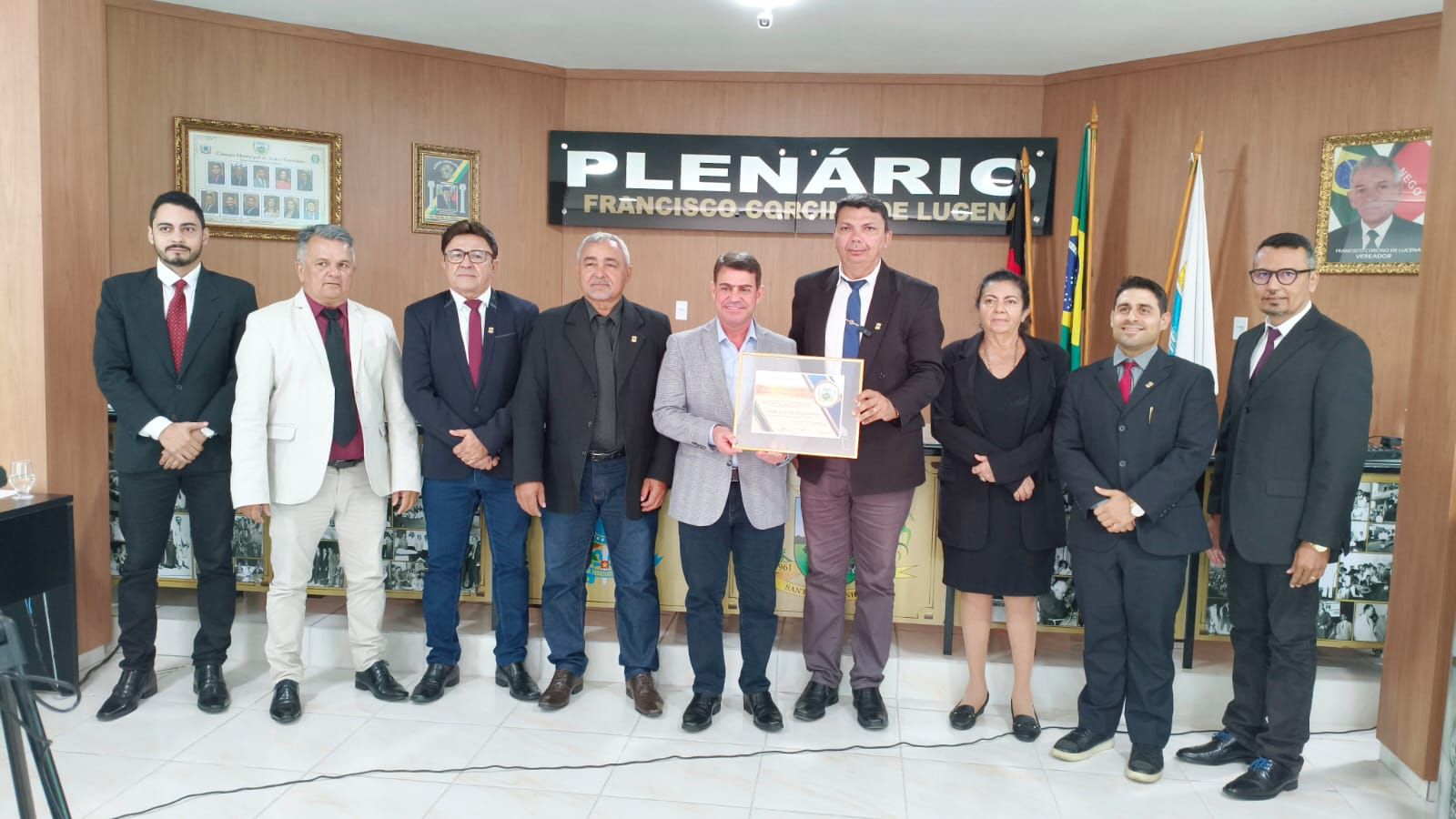 A sessão contou com a presença de autoridades locais, lideranças políticas e moradores do município, marcando um momento de reconhecimento e valorização da trajetória pública de Dinho.