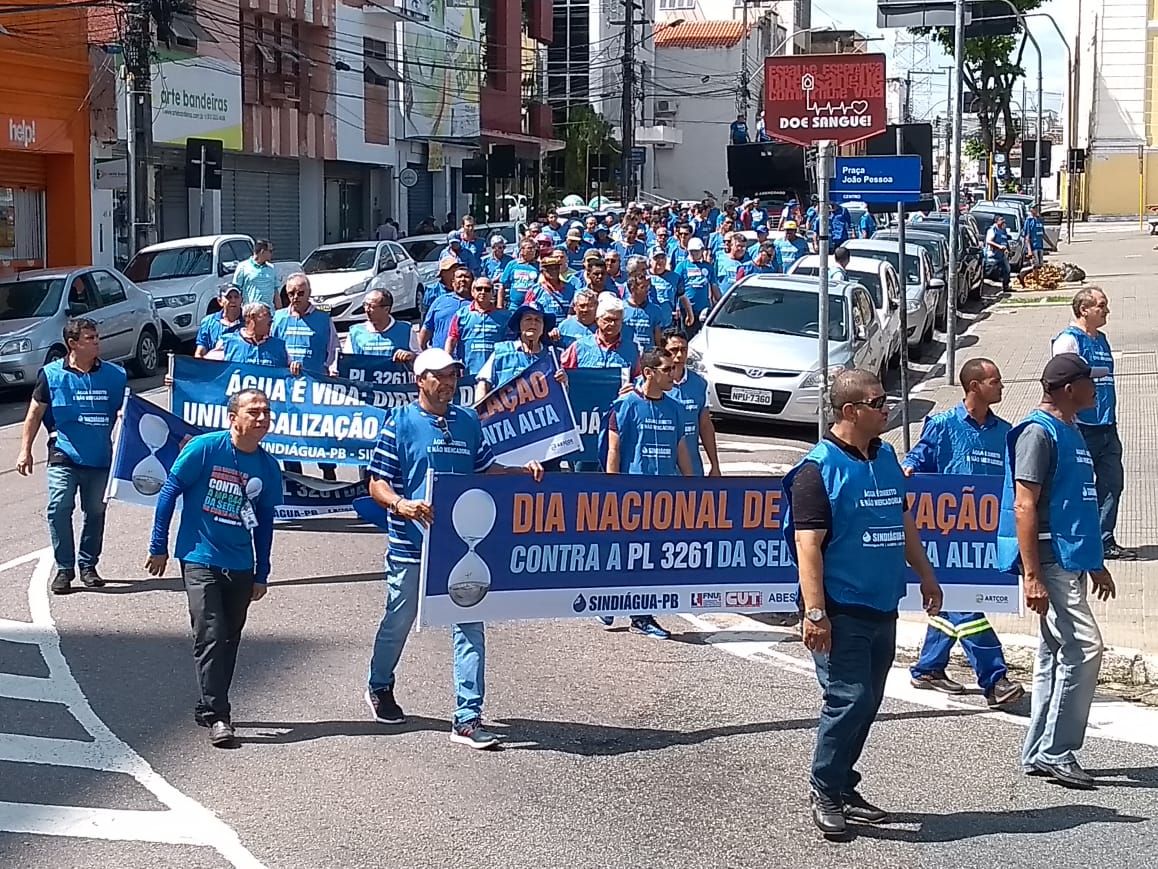 Aconteceu na manhã desta sexta-feira, 27, em João Pessoa, uma manifestação promovida pelo SINDIÁGUA-PB, além de representantes da sociedade civil organizada, durante o seminário que trata do PL 3261/19, que altera o marco regulatório do saneamento na ALPB.