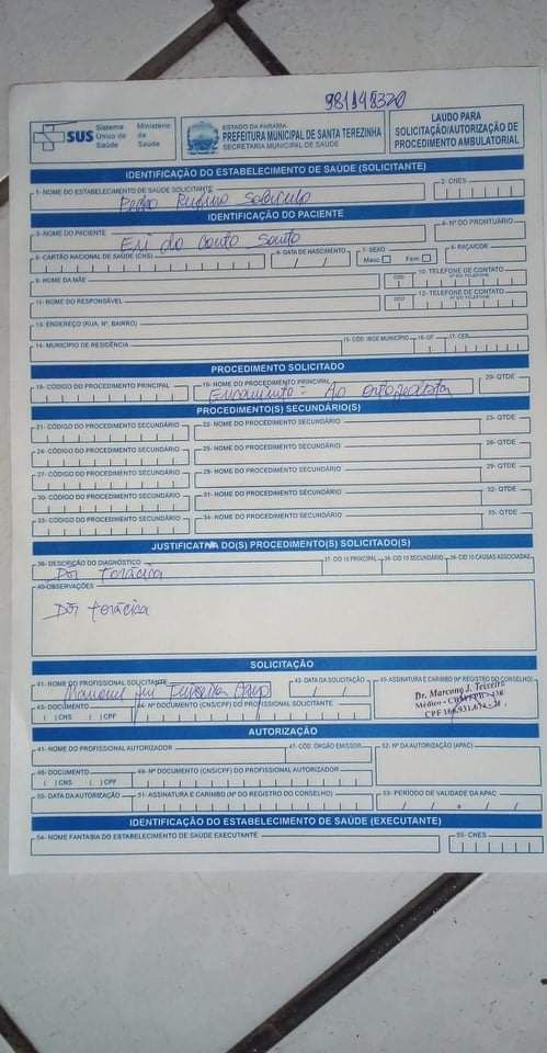 Eri mora a Rua Miguel Gonçalves, em Santa Teresinha e também precisa usar uma cinta para trabalhar, e somando a consulta e o resto dos gastos sai em torno de R$ 1.000,00 (mil reais), e está sem condições para o tratamento.