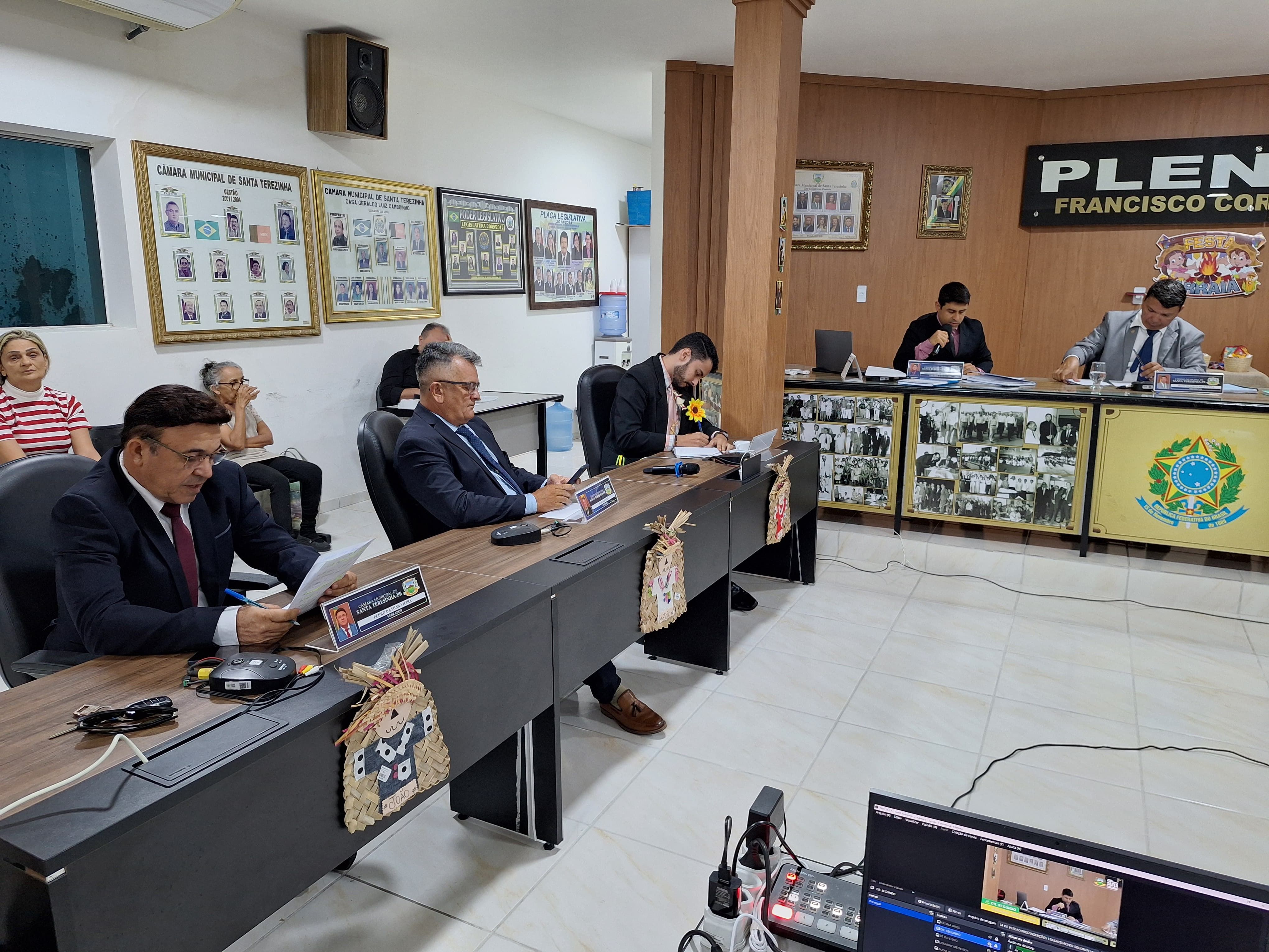 A sessão da Câmara Municipal de Santa Terezinha foi realizada nesta sexta-feira, 13 de junho, com início dos trabalhos às 17h, sob a condução do presidente da Casa, vereador Francisco Bezerra. Todos os vereadores estiveram presentes.