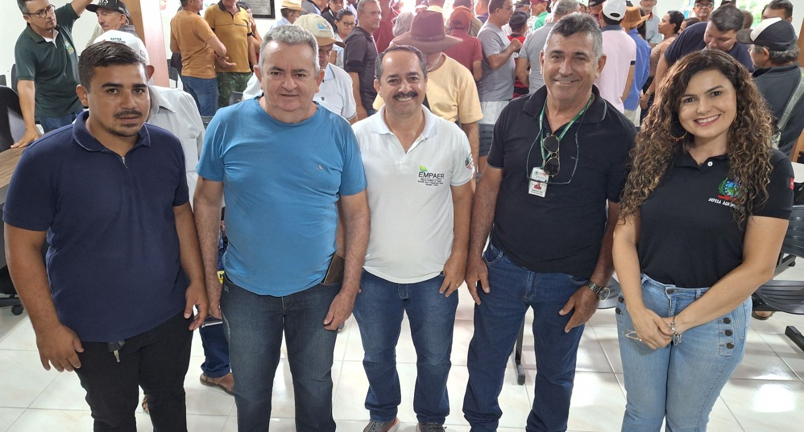 Participaram da reunião: o secretário de Agricultura, Damião Aires; o gerente do escritório local da Empaer, Marconi Palmeira Filho; vereadores; representantes de associações rurais; produtores rurais.