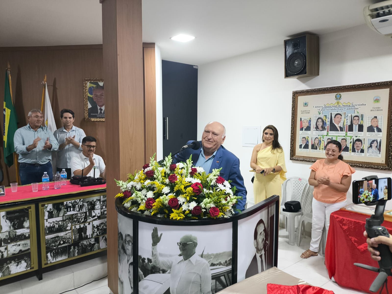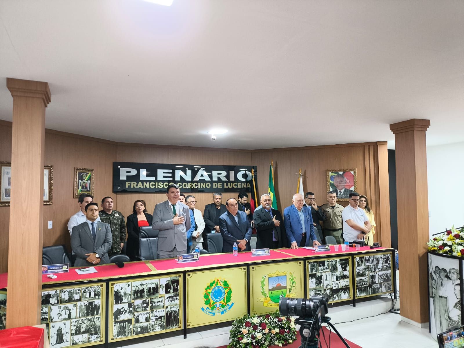 A sessão solene reforçou o reconhecimento institucional ao conselheiro Nominando Diniz e marcou um momento de celebração para o Legislativo e para a população de Santa Terezinha.