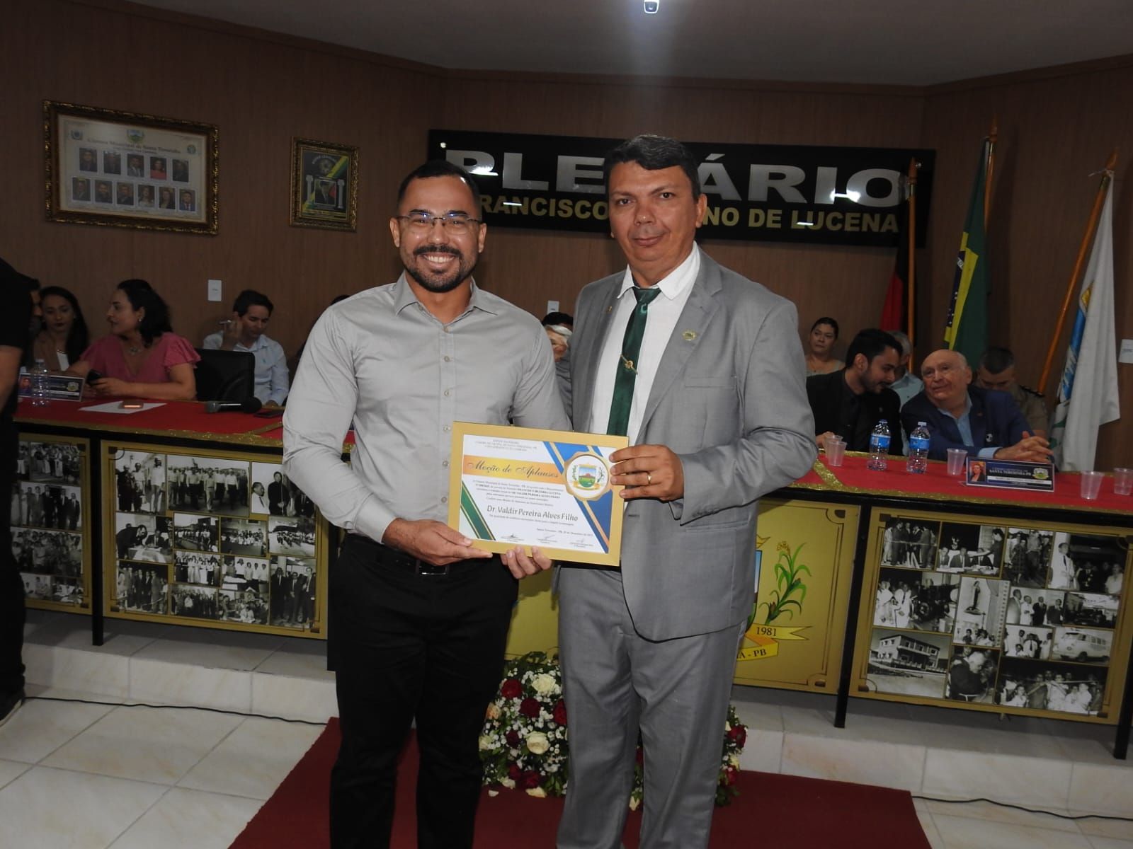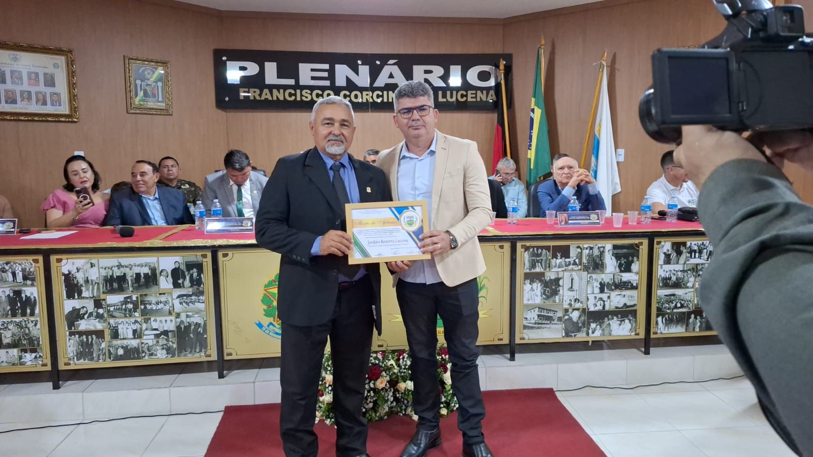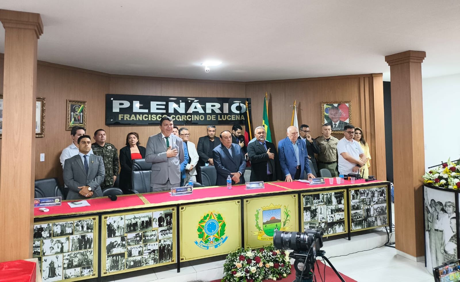 A Câmara Municipal de Santa Terezinha viveu um momento de muita emoção na noite desse sábado, dia 20 de dezembro, durante a sessão solene que homenageou autoridades civis e militares do município e de fora dele, além da concessão de títulos de cidadão santerezinhense. A sessão foi presidida pelo presidente Francisco Bezerra e contou com a presença de diversas autoridades, entre elas o prefeito da cidade, Arimatéia Camboim, prefeita de Passagem, Rozângela Ferreira; a prefeita de Emas, Anete Loureiro; o prefeito de Igaracy, Edinailton Sabino; a deputada estadual Francisca Motta; e o conselheiro Nominando Diniz.
