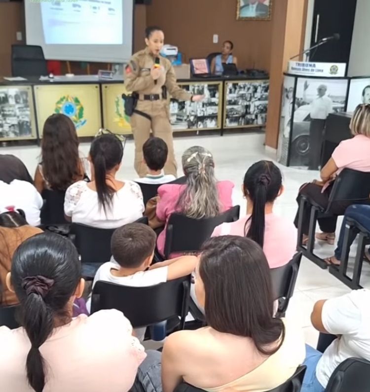 A palestrante foi à capitã Gabriela Félix, do 3º Batalhão de Polícia Militar (3º BPM) e comandante da Patrulha Maria da Penha na região de Patos. Ela falou sobre a Lei Maria da Penha; feminicídio; rede de proteção à mulher; canais de denúncias; avanços no direito das mulheres; prevenção e conscientização contra a violência.