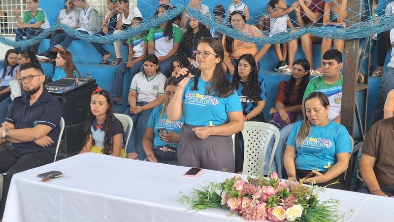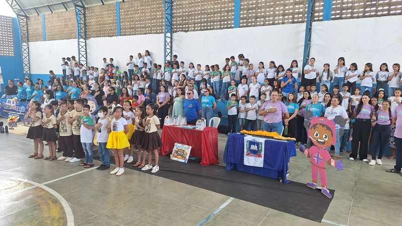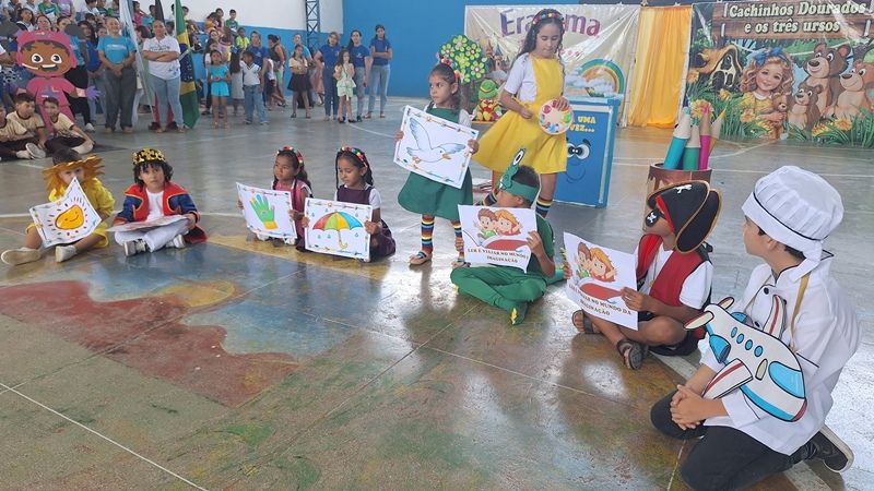 O evento ocorreu no ginásio municipal e contou com a presença de autoridades, representantes da Secretaria Municipal de Educação e da Secretaria Municipal Cultura; gestores escolares; alunos do CMEI Regina Maria da Conceição; alunos do EMEF Colégio Santa Terezinha e comunidade.