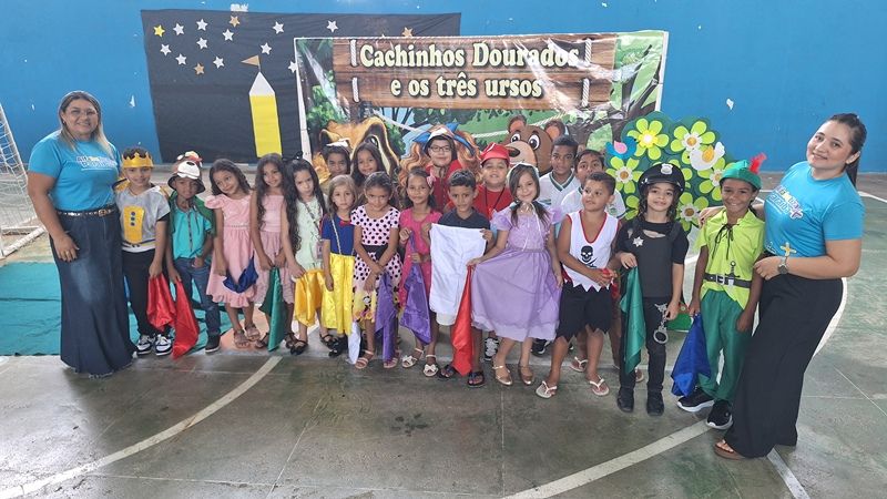 Alunos do 2º Ano B da EMEF Pedro Soares de Almeida fizeram a encenação da música ‘Era uma Vez’, composição de Alvaro Socci e Claudio Matta e a encenação da história clássica Cachinhos Dourados e os Três Ursos.
