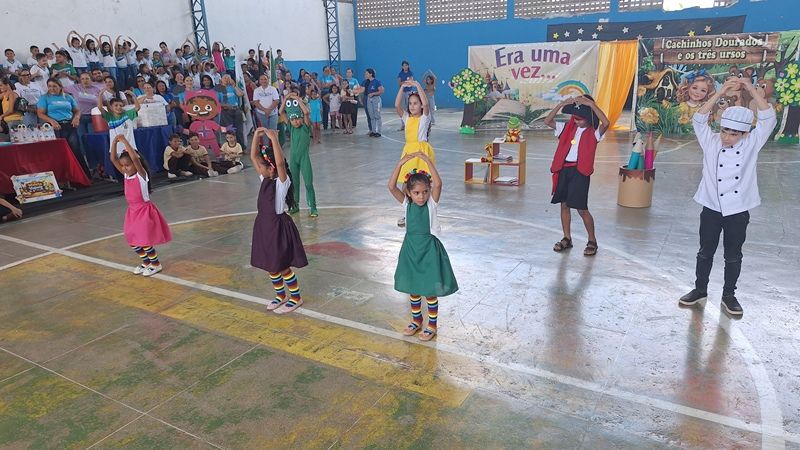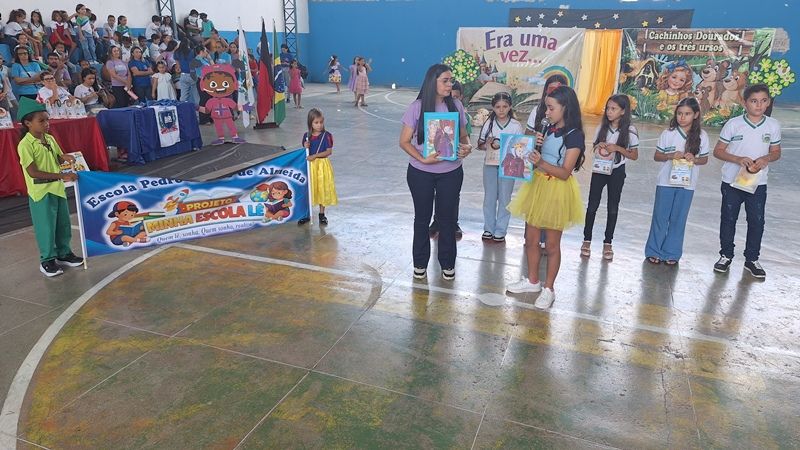 Apresentação do Projeto de Leitura Minha Escola Sabe Lê do 2º Ano A, da Escola Pedro Soares de Almeida; apresentação da Literatura de Cordel pelos alunos do 3º Ano B da Escola Pedro Soares de Almeida; apresentação do Projeto Malas Viajantes, executada pelos anos do 5º Ano A da Escola Pedro Soares de Almeida.