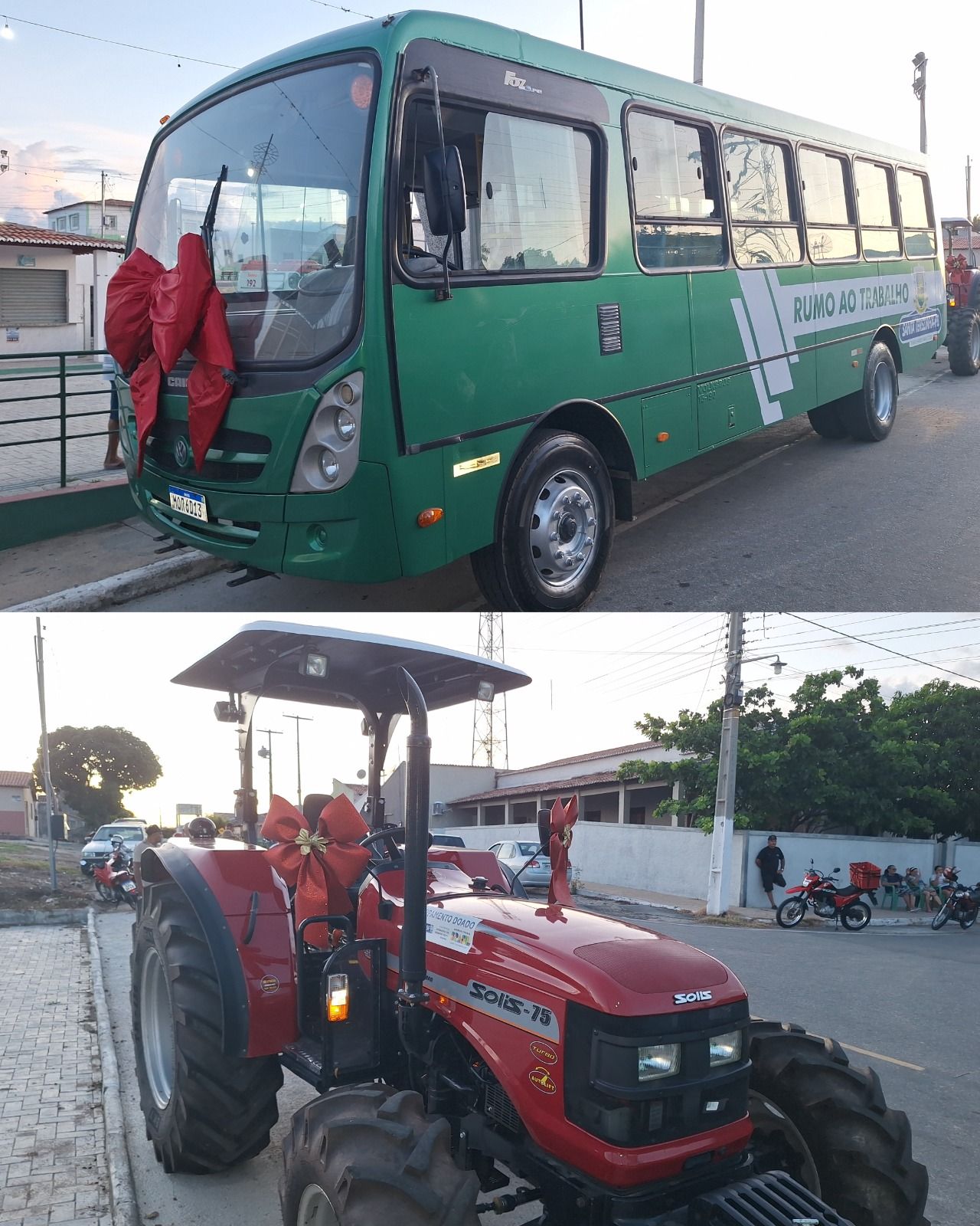 Um trator 4x4 foi entregue aos agricultores; uma nova ambulância do Serviço de Atendimento Móvel de Urgência (SAMU); uma van com capacidade para 16 pessoas, com poltronas reclináveis, uma cadeira com elevador para Pessoas com Deficiência (PcD) e ar-condicionado; um ônibus para o Programa Rumo ao Trabalho com capacidade para 48 pessoas, o transporte leva trabalhadores do município que trabalham na cidade de Patos.