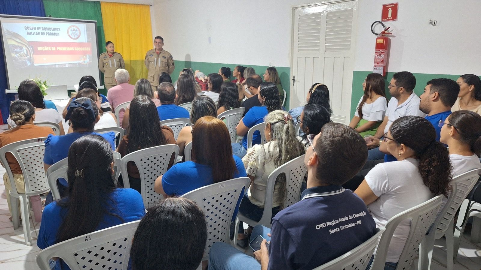 A Secretaria Municipal de Educação de Santa Terezinha – PB em parceria com o 4º Batalhão de Bombeiro Militar (4º BBM), promoveram na sexta-feira (17), o Curso de Primeiros Socorros para gestores escolares, equipe pedagógica, professores e cuidadores educacionais. O treinamento ocorreu no auditório do Centro de Referência da Assistência Social (CRAS).