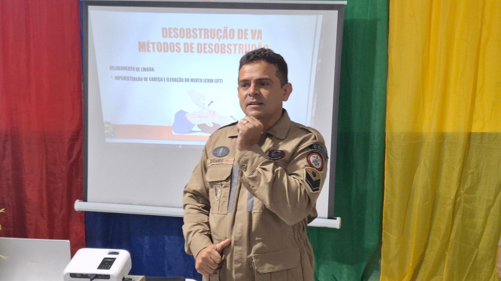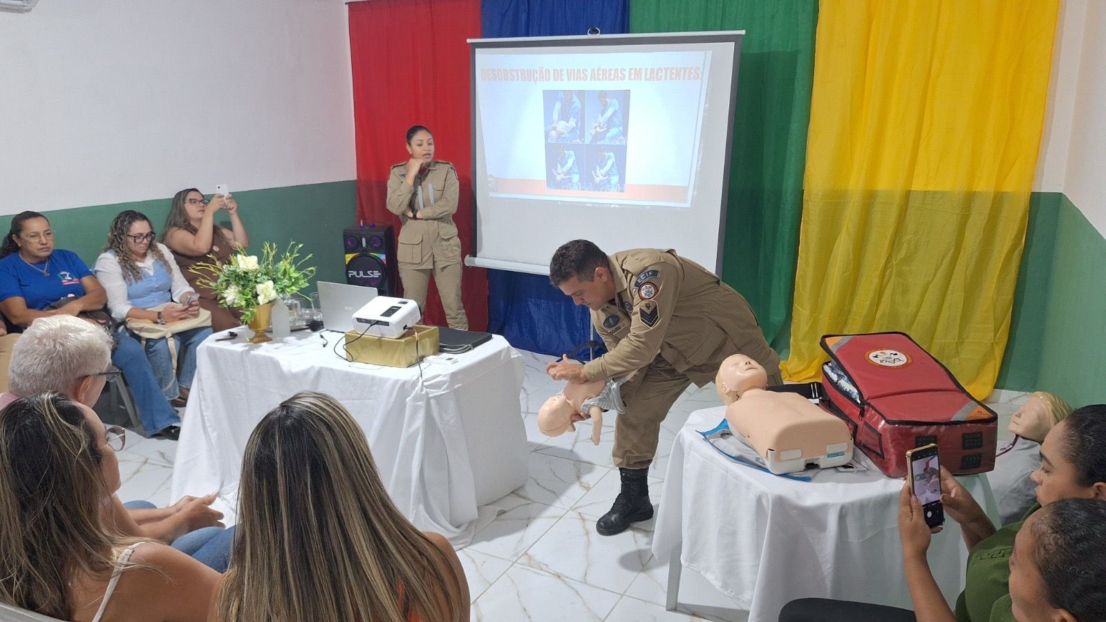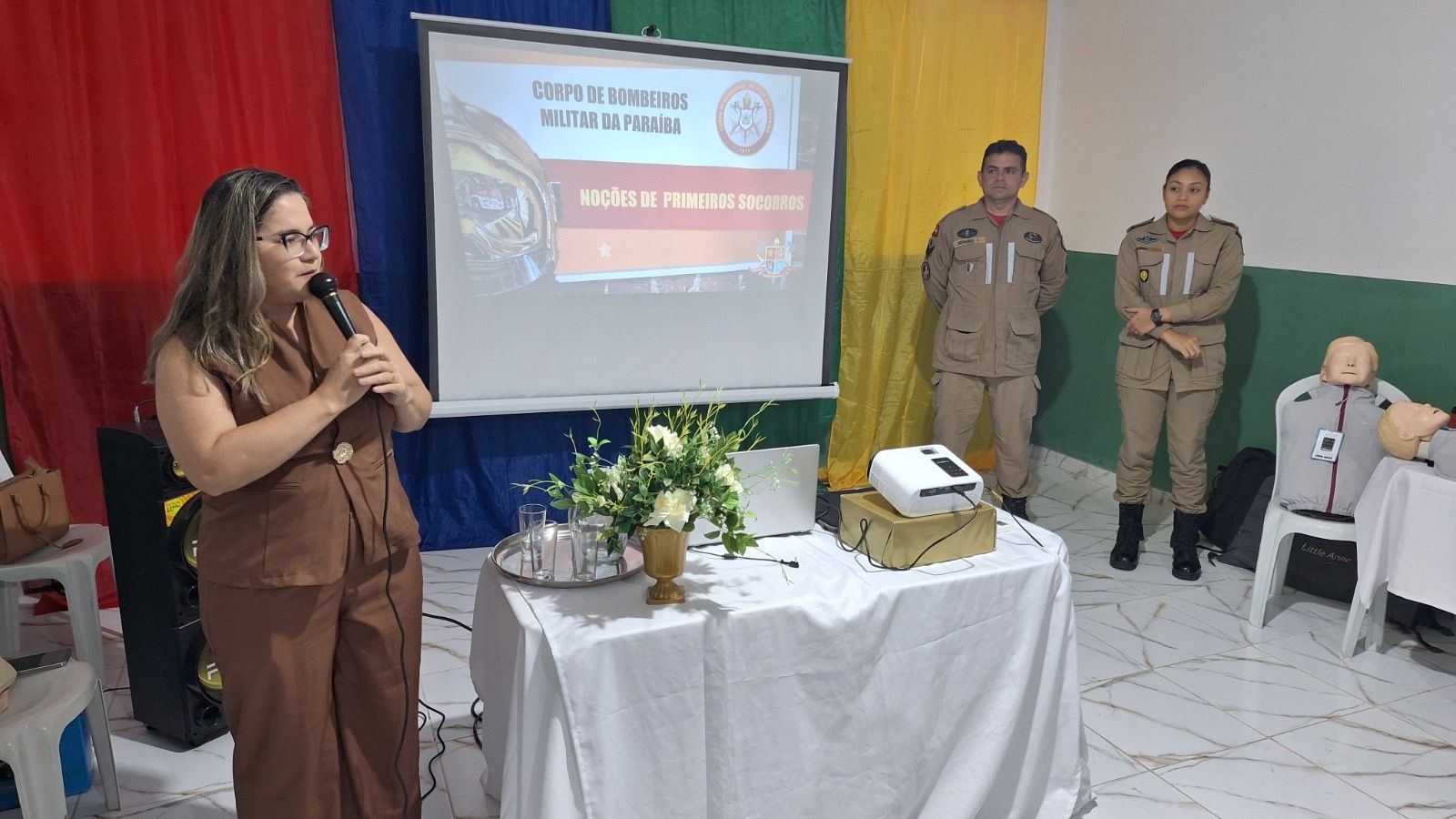 A tenente Raíssa, pertencente ao 4º Batalhão de Bombeiro Militar, uma das palestrantes, falou sobre a importância do treinamento.
