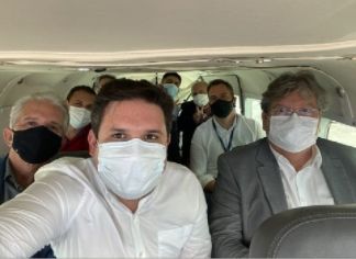Após participarem de uma breve solenidade no saguão do Aeroporto do Recife, na área de check-in da Azul, o governador da Paraíba -...