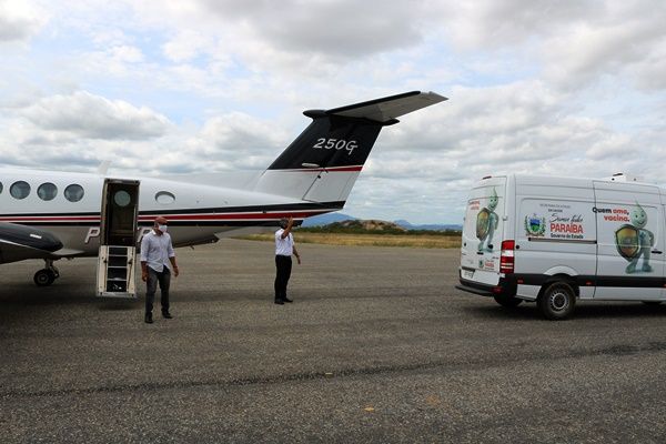 As primeiras doses da Coronavac, vacina desenvolvida pelo Instituto Butantan, de São Paulo, acabaram de chegar ao aeroporto Brigadeiro Firmino, em Patos, de...