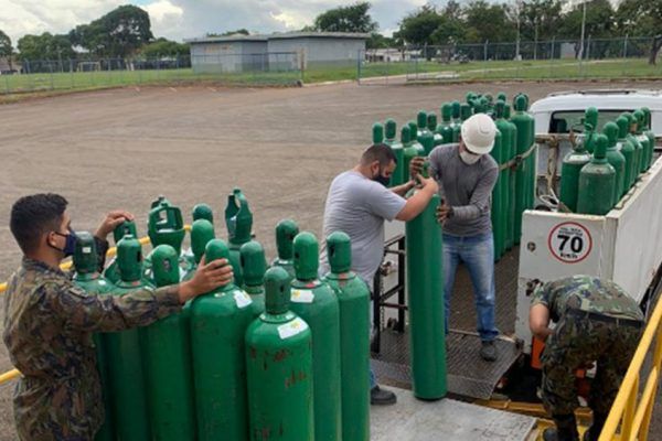 O Ministério da Saúde informou que um avião vai transportar, neste sábado (16), 80 cilindros com oxigênio hospitalar para...