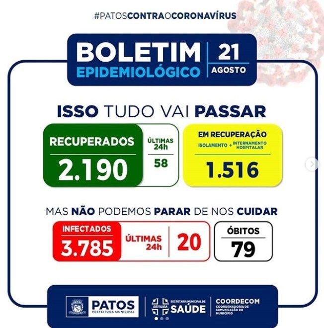 A Vigilância Epidemiológica da Secretaria de Saúde de Patos, divulgou nesta sexta-feira, dia 21 de agosto, que a Capital do Sertão...