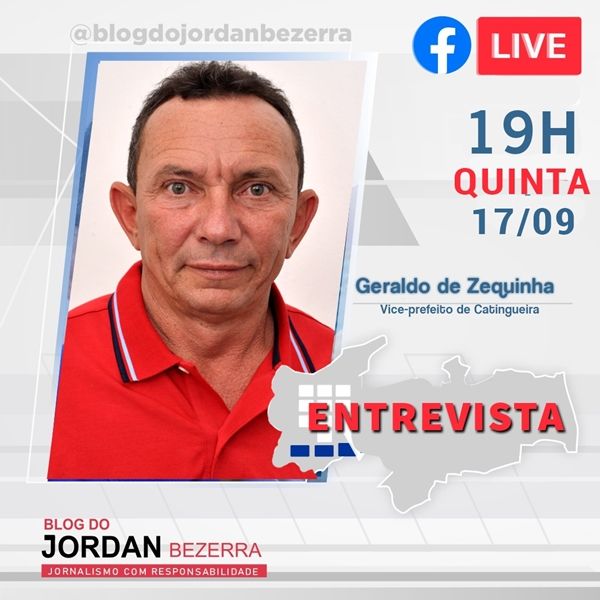 O vice-prefeito de Catingueira-PB, Geraldo de Zequinha, irá participar de uma live nesta quinta-feira (17), no facebook do Blog do Jordan Bezerra, para expor...