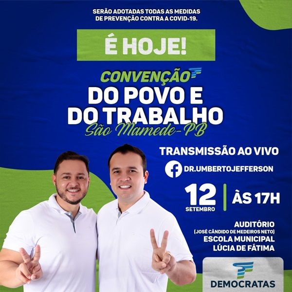 O Democratas (DEM) de São Mamede-PB fará hoje, sábado (12/9), a convenção para homologar os nomes dos pré-candidatos a...