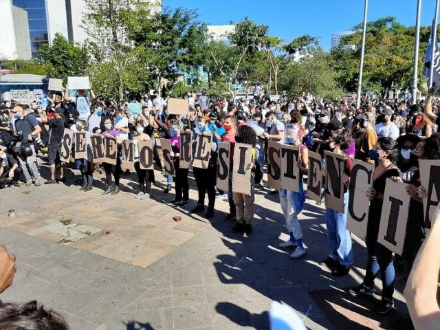 Manifestantes se reúnem na tarde deste domingo (7) em um protesto contra o presidente Jair Bolsonaro (sem partido), contra o racismo e o fascismo...