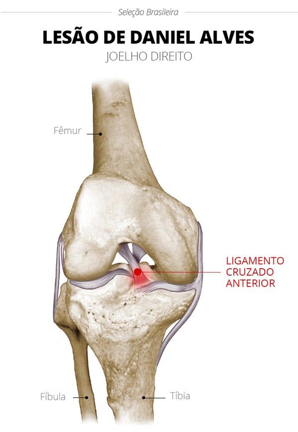 O lateral-direito sofreu uma desinserção no ligamento cruzado anterior do joelho direito. Isso significa que o ligamento se soltou de um osso. É diferente do rompimento mais convencional, quando ele parte no meio. Além disso, há uma entorse no joelho.