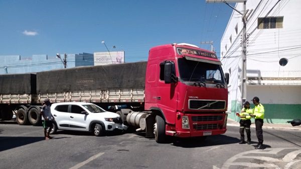 Acidente envolvendo carreta e carro de passeio é registrado no centro de Patos
