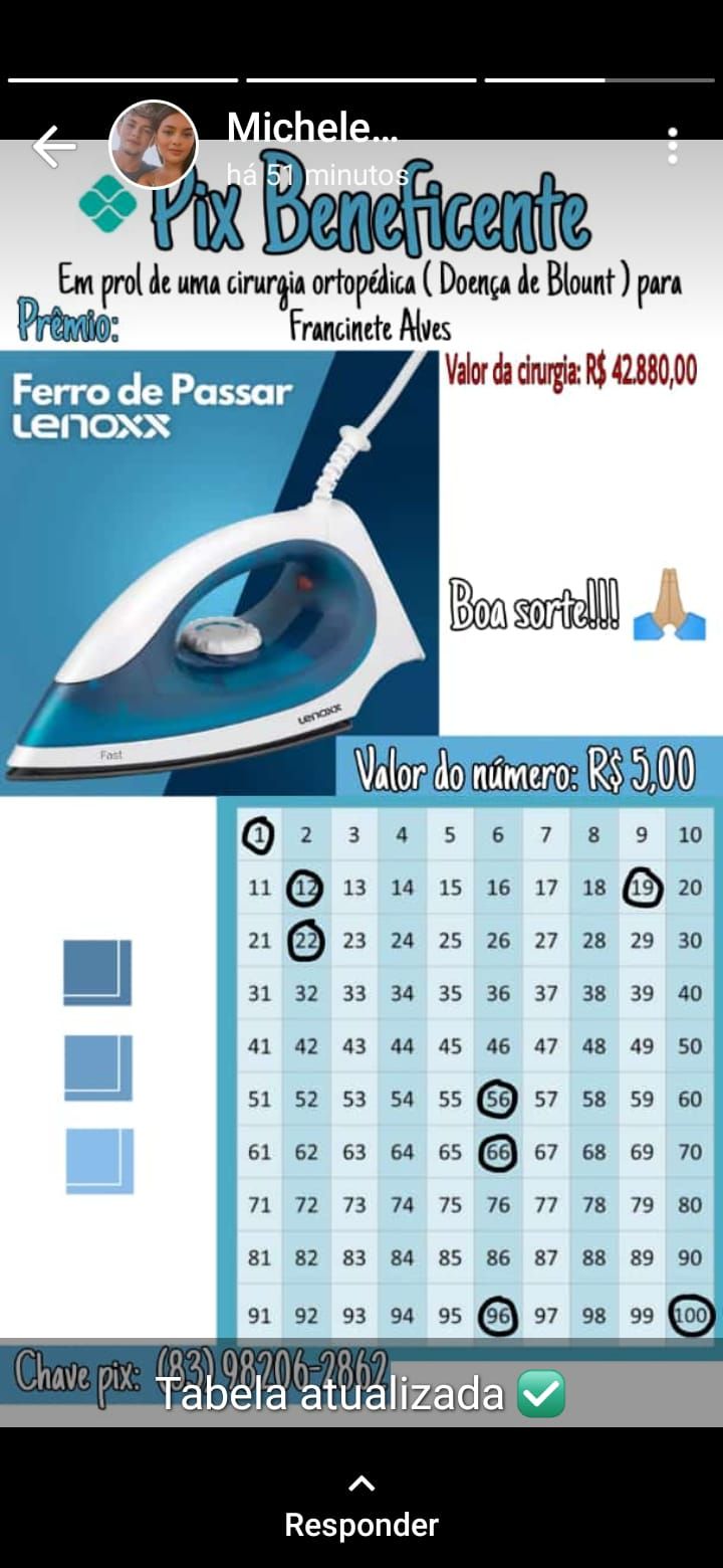 Quem puder e quiser ajudar, pode transferir qualquer valor para o PIX celular (83) 98206-2862. Pode ainda falar com Francinete ou com sua família e colaborar de alguma outa forma, caso seja possível