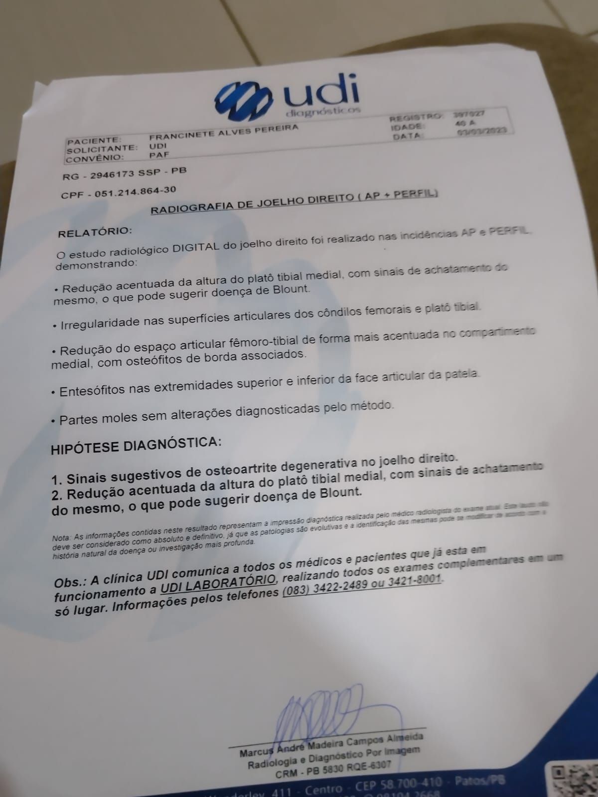 "Não consegui juntar os recursos para fazer a minha cirurgia, tive que correr atrás da secretaria da saúde, onde me colocaram no programa opera Paraíba e consegui fazer meus exame e deixei tudo bem certinho, mas como se trata do SUS, sabemos que é demorado e hoje peço a vocês, médicos ortopedistas, políticos, autoridades e cidadãos que possam contribuir para que consiga fazer essa cirurgia. Hoje vivemos de ajuda, isso é muito chato de falar, expor a minha vida, mas preciso de qualquer ajuda que vocês para que consiga fazer a minha cirurgia, pois hoje praticamente não estou andando. Faço a minha luta quase engatilhando, pois preciso fazer a minhas atividades e hoje quem me ajuda em casa são meus filhos e o meu companheiro. Agora preciso dessa força de vocês", disse Francinete.