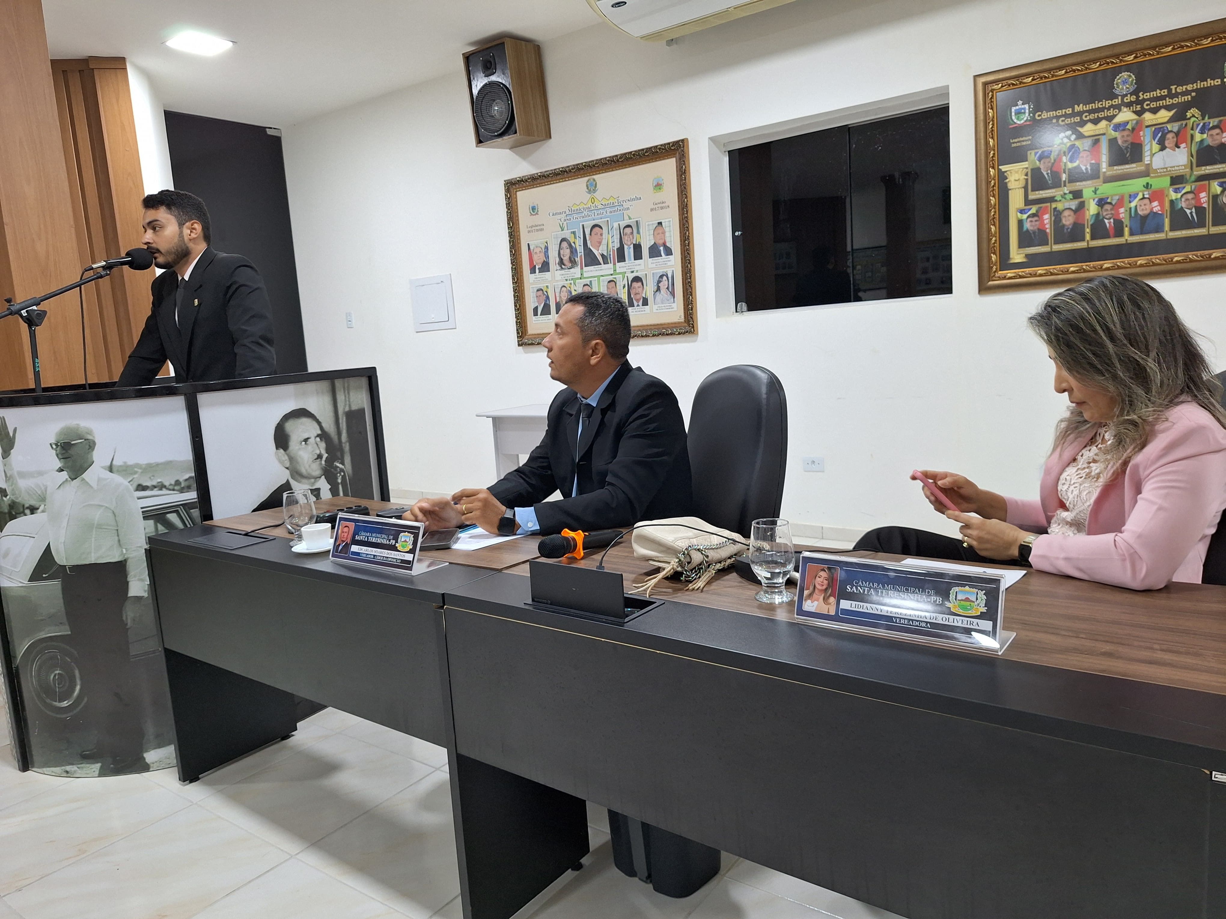 O presidente da Câmara, vereador Francisco Bezerra, saudou a todos os presentes e se acostou aos votos de pesar apresentados. Agradeceu a Deus por mais uma oportunidade de representar o povo e ressaltou a importância dos requerimentos apresentados pelos vereadores, sempre em benefício da população. Destacou que a gestão iniciou o melhoramento das estradas do município, enfatizando também as melhorias na mobilidade urbana e a realização de acessos na cidade, que visam facilitar o cotidiano dos moradores. Agradeceu aos colegas vereadores pela aprovação do projeto que permite carona em veículos de transporte escolar quando houver vaga sobrando, beneficiando trabalhadores e outros populares do município. Sobre o Orçamento Democrático, afirmou que foi bastante produtivo e contou com a participação efetiva dos agricultores. Cobrou maior interesse da população nos temas relacionados ao município e solicitou também que os secretários estejam mais presentes em eventos e reuniões importantes para o desenvolvimento local. Mencionou que, entre as propostas apresentadas no orçamento, está a construção da Casa de Mel, justificando a sugestão com o fato de que, no ano anterior, a produção foi alta e movimentou a economia da cidade. Defendeu ainda a construção de uma garagem para a secretaria de transportes, com o intuito de melhorar a manutenção dos veículos públicos. Parabenizou o senador Efraim Filho pela atuação no Senado, destacando o comprometimento com Santa Terezinha, e criticou os demais senadores que, segundo ele, não têm olhado para o município. Ressaltou a necessidade urgente de substituir a van utilizada para o transporte de pacientes, afirmando que não adianta mais gastar com consertos, pois o veículo não suporta mais o uso contínuo. Finalizou convidando toda a população para participar da tradicional festa do sítio Lajedo.