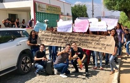 Vestidos de preto, simbolizando luto, vários estudantes da Escola Cidadã Integral Maestro José Siqueira, na cidade de Conceição,...
